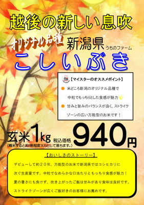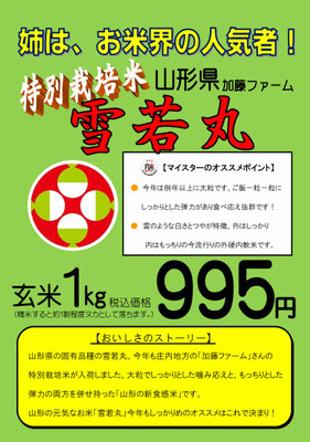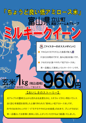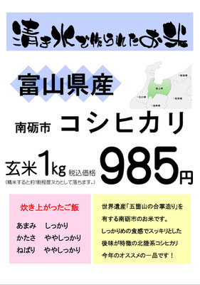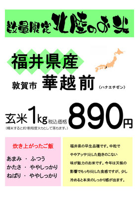 お米は1㎏から計り売りいたします。表示価格は玄米1㎏(税込価格)です。